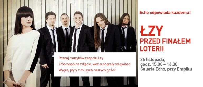 W sobotę (26.11) zapraszamy ma spotkanie z zespołem ŁZY. Galeria ECHO w Kilecach, przy Salonie EMPiK, od godz. 15.00 do 16.00.