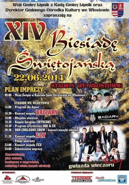Wieczorową niedzielną (22.06) porą spotykamy się we Włostowie podczas Biesiady Świętojańskiej - nie może Was zabraknąć na tym koncercie! Zagramy dla Was o 21:30!